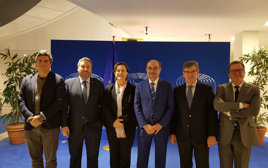Ambas delegaciones se han reunido esta mañana con la embajadora de España en Bélgica, Beatriz Larrocha, que apoya todas las iniciativas aragonesas, incluyendo la demanda ante el Parlamento para aprobar las enmiendas que piden incluir el ramal Valencia-Teruel-Zragoza en el eje Mediterráneo del Corredor y su próxima financiación.