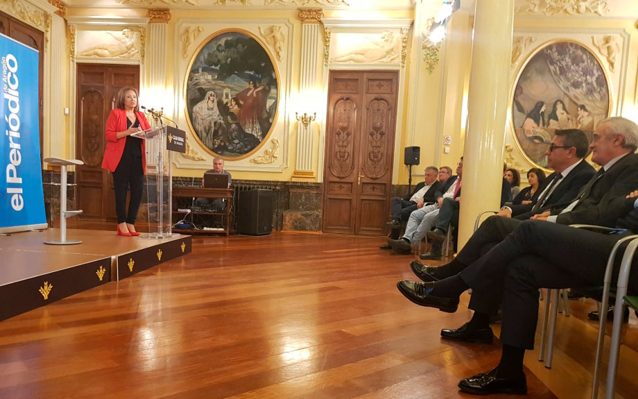 Zaragoza, 13 de noviembre de 2019.- La consejera de Presidencia y Relaciones Institucionales, Mayte Pérez, ha cerrado la I Jornada de Revitalización del Mundo Rural. Soluciones a la despoblación en Aragón’, organizada por ‘El Periódico de Aragón’ en colaboración con Caja Rural Aragón, y que se ha desarrollado en el Salón de Columnas de la mencionada entidad.