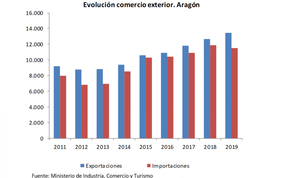Las exportaciones de Aragón en el conjunto del año 2019 baten un nuevo récord histórico con un valor de 13.472,6 millones de euros