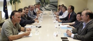 El presidente de Aragón, Javier Lambán y el consejero de Desarrollo Rural y Sostenibilidad, Joaquín Olona, han mantenido hoy una reunión con miembros de las cuatro organizaciones agrarias (UAGA, ASAJA, ARAGA y UPA)